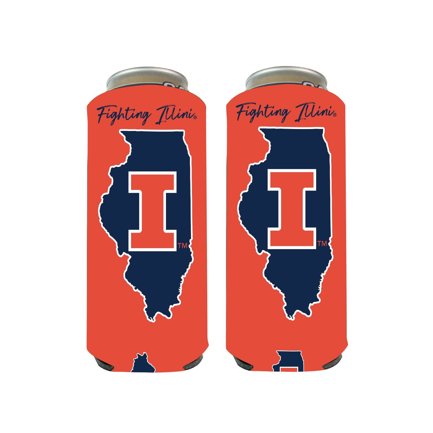 Show your Orange and Blue pride! This Illinois koozie is perfect for any Illini fan. This can koozie features a 24oz orange body with a navy script Fighting Illini above a navy Illinois state shape that makes it great for games and tailgates. Don’t miss out on this can cooler to show your Fighting Illini spirit! This is an officially licensed collegiate product.
