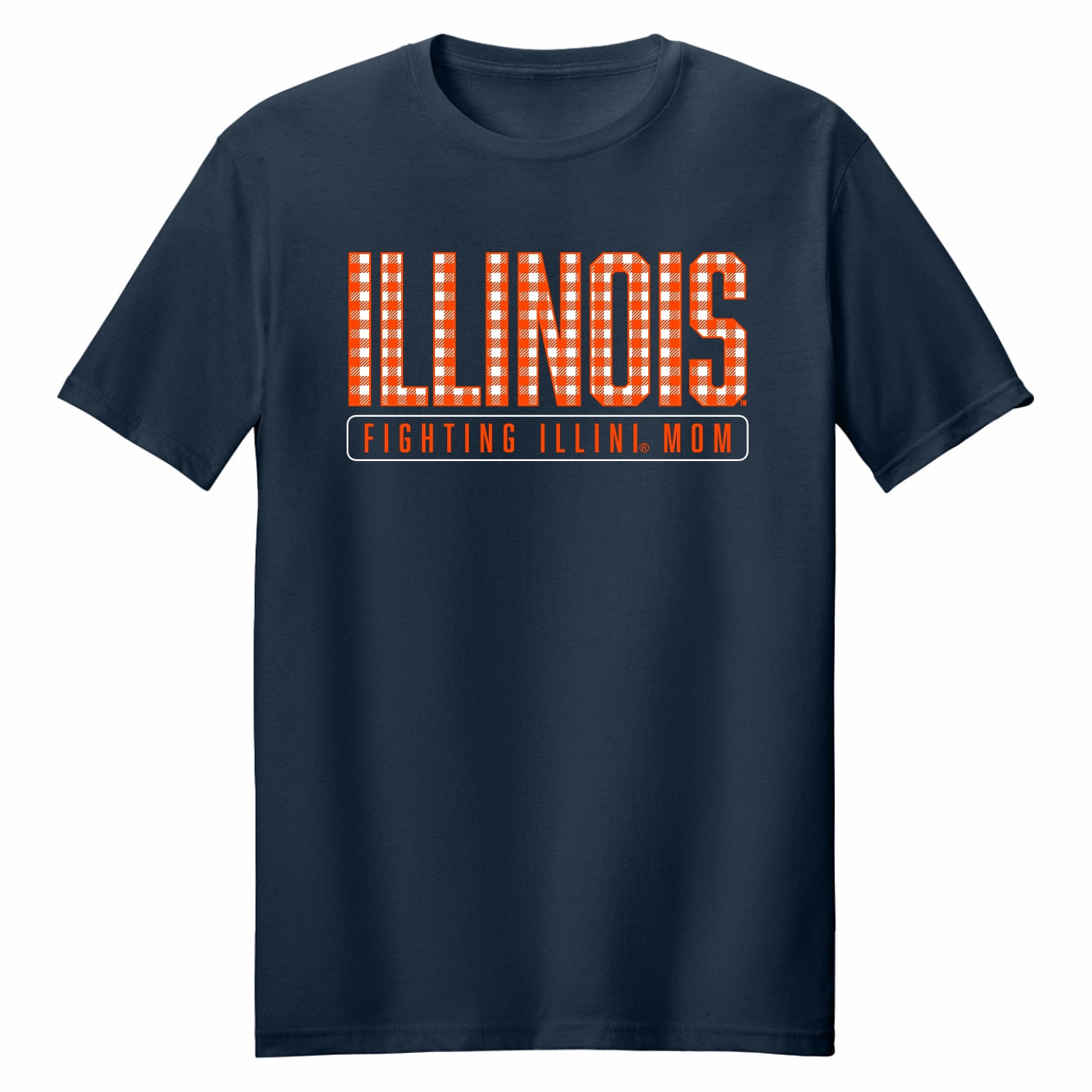 Go Illini! This Illinois Mom's Weekend shirt is perfect for wearing around campus for the weekend! This t-shirt features a navy body with a plaid "Illinois" above an orange "Fighting Illini Mom". This Illinois shirt is great for your mom to show her Fighting Illini spirit! This is an officially licensed collegiate product.