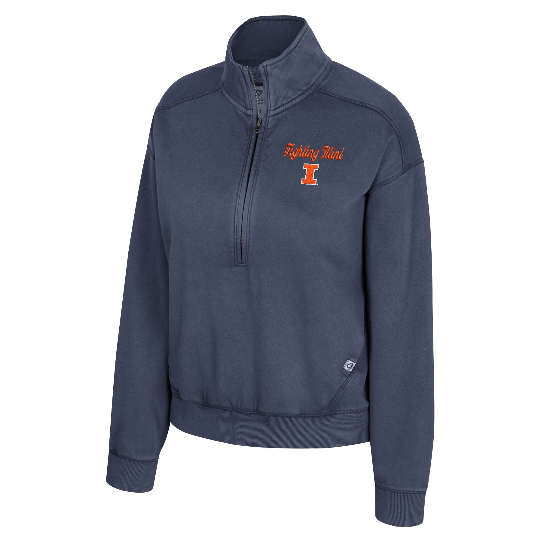 Hail to the orange! This Illinois pullover is a great way to show your Fighting Illini spirit! This women's half-zip features a navy body with an orange script "Fighting Illini" and block I on the left that is great for any occasion. Make sure to pick up this Fighting Illini jacket to show off your Illinois pride! This is an officially licensed collegiate product.
