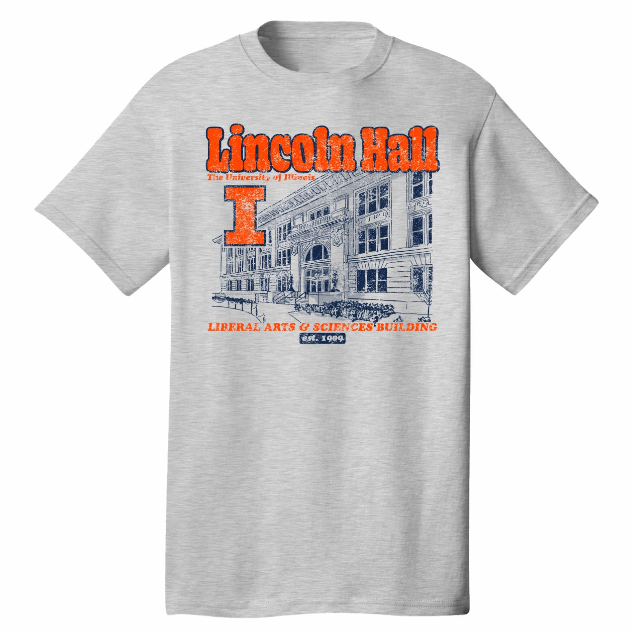 Show your Fighting Illini pride with this new Illinois Fighting Illini grey Lincoln Hall short sleeve tee. This Gameday Spirit exclusive short-sleeve t-shirt is an officially licensed collegiate product. It features Lincoln Hall in a navy and orange graphic. This University of Illinois campus inspired Short-Sleeve Tee is the perfect piece to show your Fighting Illini spirit on game days!
