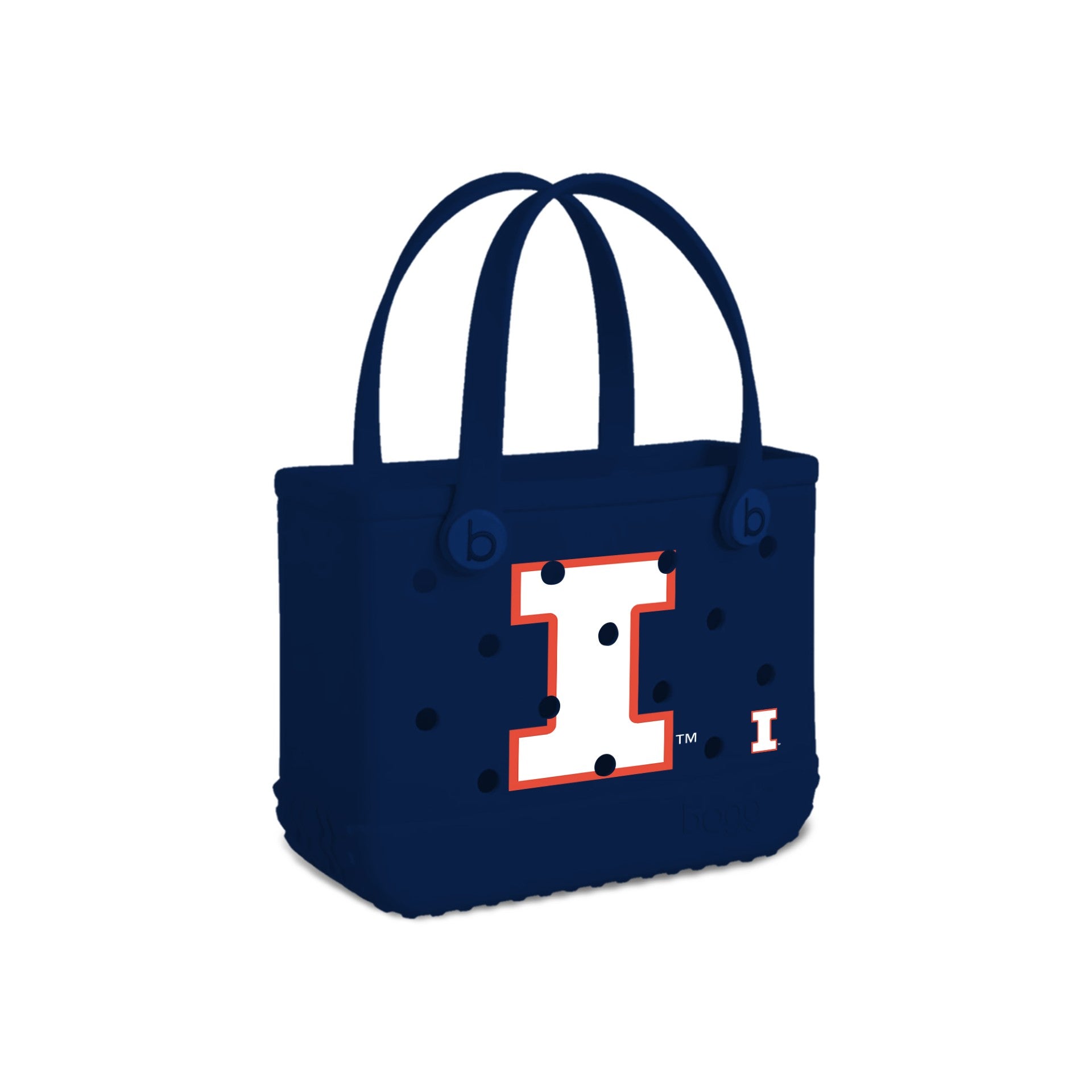 I-L-L! Pick up this Fighting Illini Bitty Bogg Bag to really show your Illini spirit! This mini tote features a durable, washable rubber design, sturdy handles, and convenient side holes for adding fun charms and accessories. Compact yet versatile, it’s perfect for organizing your essentials in your home, car, tailgate, or ffice! Whether you’re on the go or cheering on the Orange and Blue, this stylish and functional bag makes an unforgettable addition to your Fighting Illini gear. Get one online or in-store today! This is an officially licensed collegiate product.