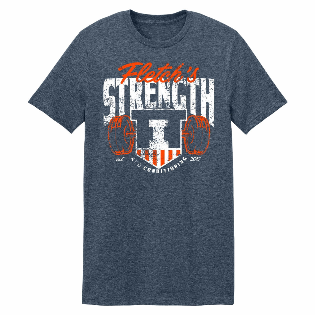 Hail to the orange! This Illinois Coach Fletcher tee is a great way to show your Fighting Illini spirit! This BOGO tee features a heather navy body with an orange and white "Fletch's Strength and Conditioning" design that is great for any occasion. Make sure to pick up this Illinois shirt to show off your Illini pride! This is an officially licensed collegiate product.