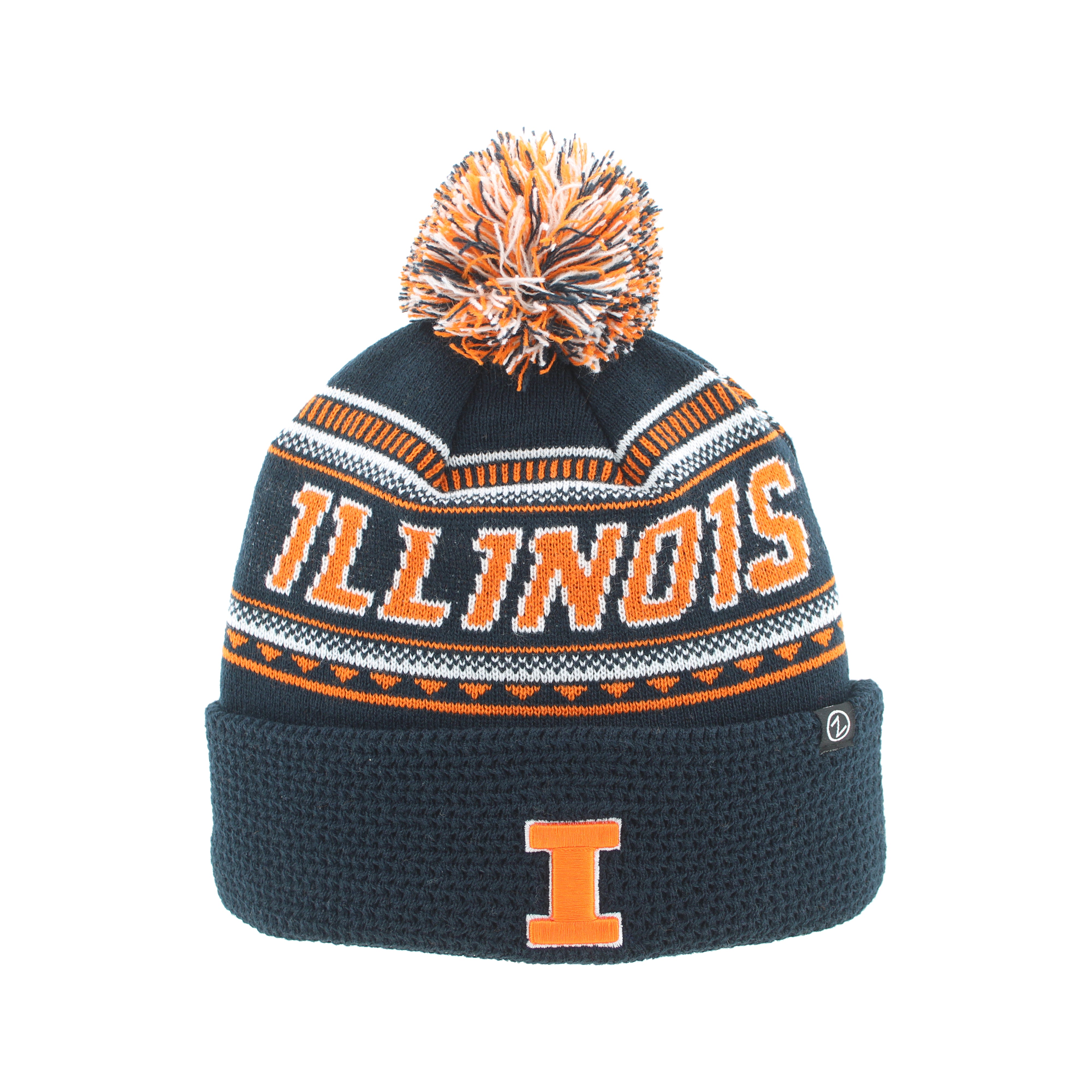 Hail to the orange! This Illinois beanie is a great way to show your Fighting Illini spirit! This winter hat features a navy waffle knit body with an orange and white Illinois wordmark pattern alongside a multicolor pom on top that is great for any occasion. Make sure to pick up this new Illinois hat to show off your Illini pride! This is an officially licensed collegiate product.