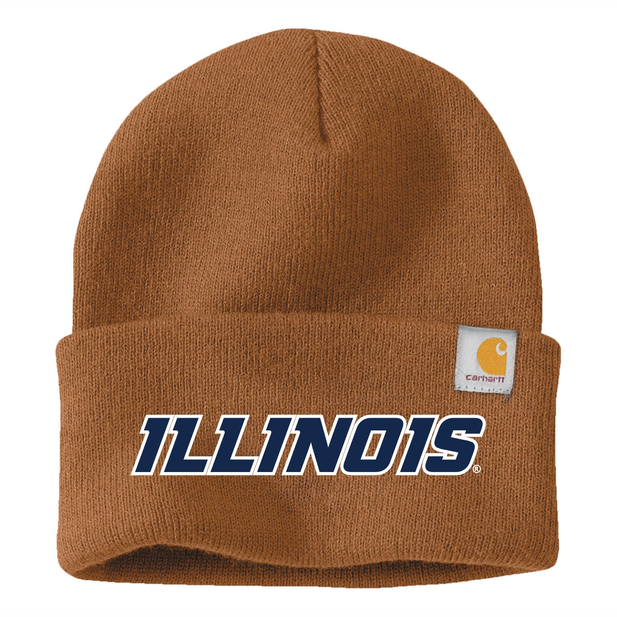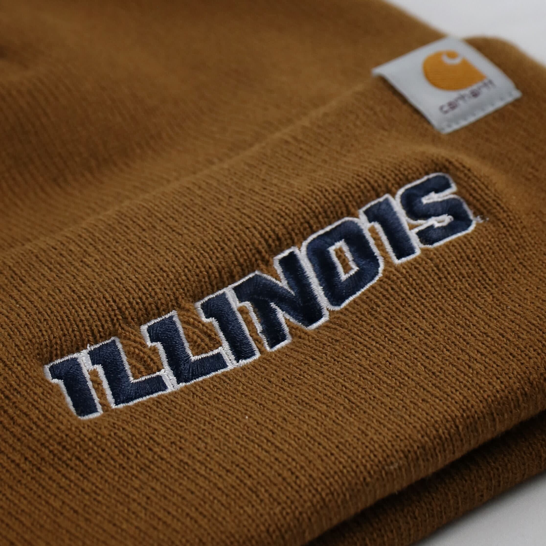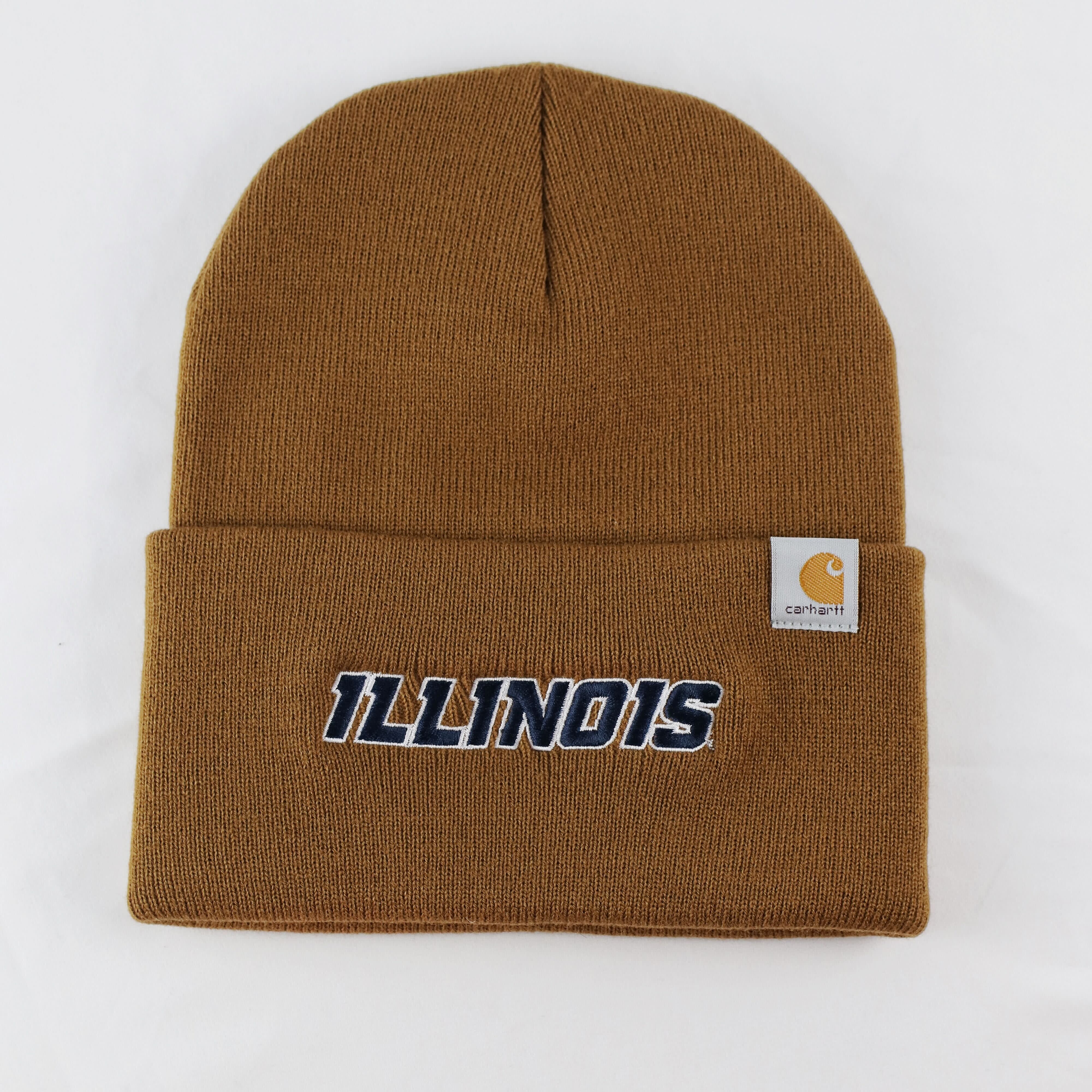 ILL-INI! Gear up for game day with this Illinois Carhartt beanie. This limited-edition beanie features a brown knit body with a navy/white classic slant "Illinois" that Illini fans will love. Show your school spirit and stay warm this winter with this Carhartt beanie while you cheer on Illinois in style! This is an officially licensed collegiate product.
