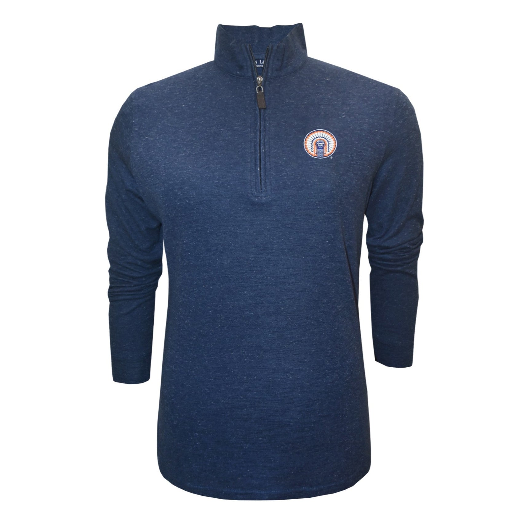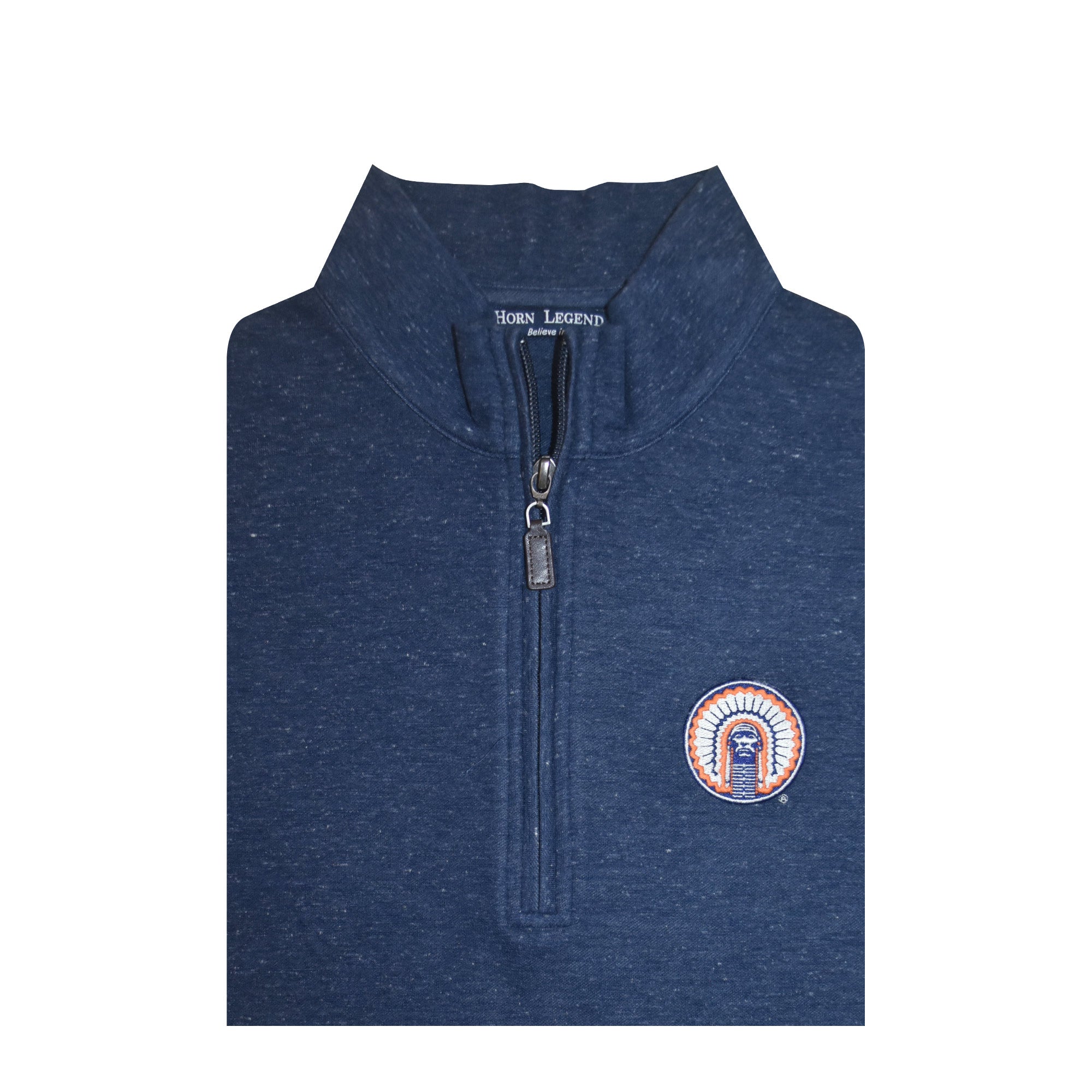 Represent the Illini everywhere you go with this Illinois Chief quarter-zip! This women's pullover comes with a heather navy body with a circular Chief logo embroidered on the front that makes it a must-have. Whether you’re in the stands or walking across campus, this Horn Legend top will keep your Fighting Illini spirit strong! This is an officially licensed collegiate product.