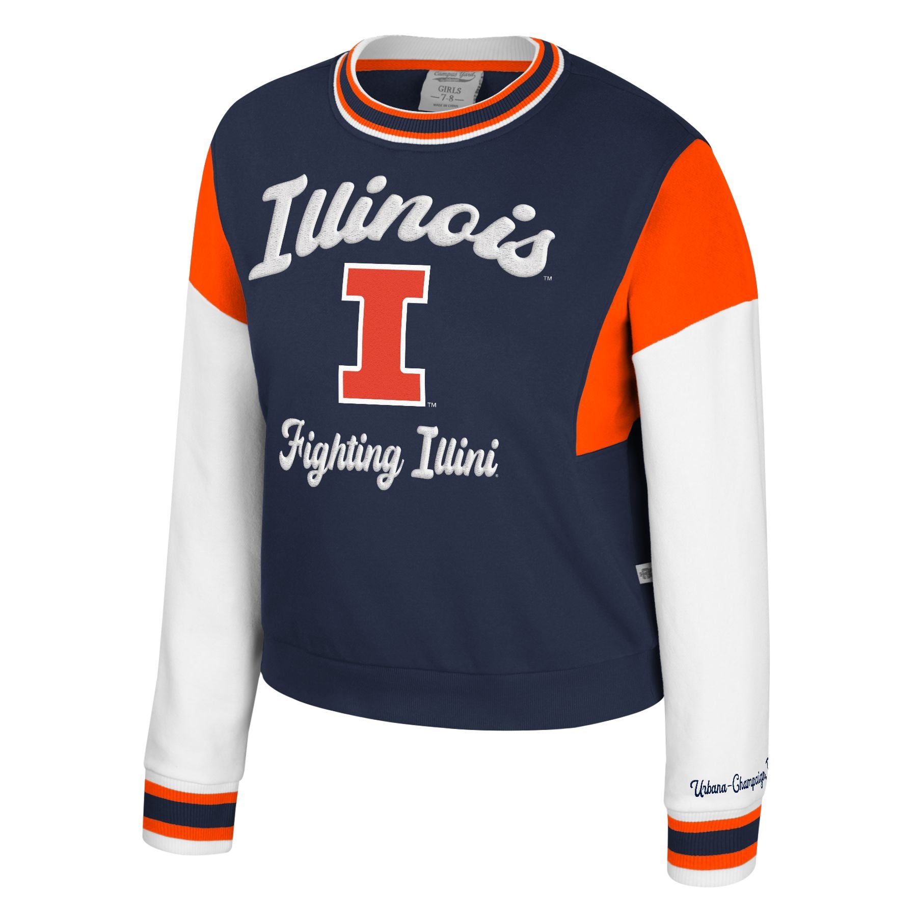 Hail to the orange! This is a great way to show your Fighting Illini spirit! Make sure to pick up this Illinois Fighting Illini Girl's Youth Colorblock Crew to show off your Illini pride! This is an officially licensed collegiate product.