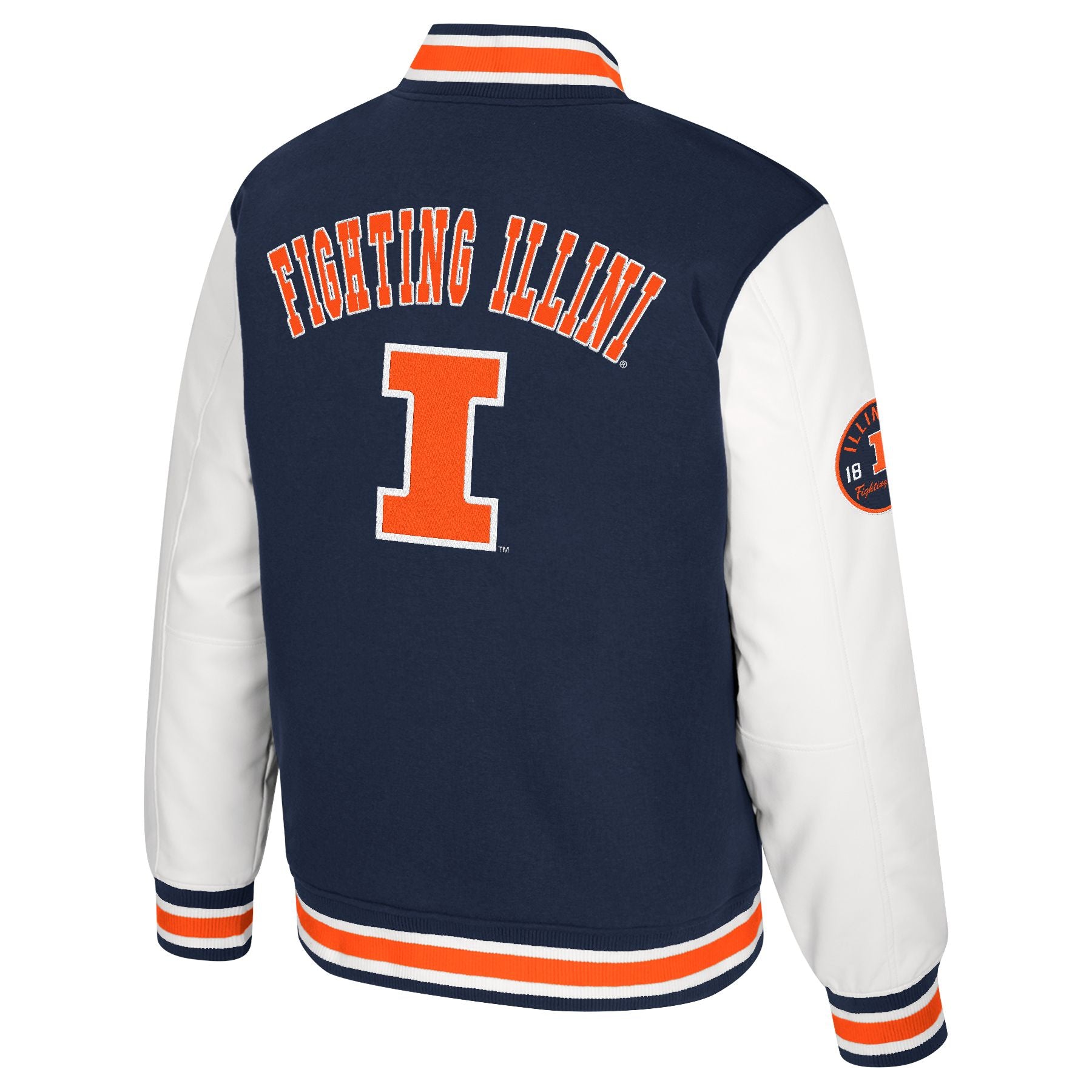 Hail to the orange! This is a great way to show your Fighting Illini spirit! Make sure to pick up this Illinois Fighting Illini Men's Letterman Jacket to show off your Illini pride! This is an officially licensed collegiate product.