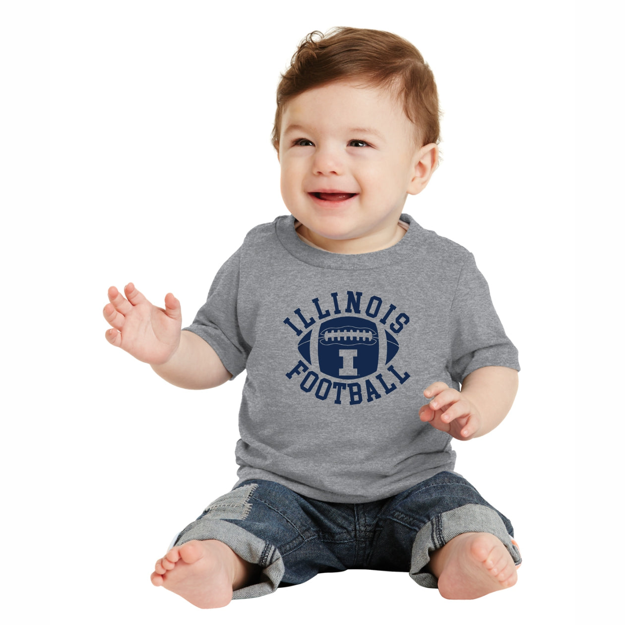 Go Illini! This Illinois Football shirt is perfect for your little Illini fan! This BOGO tee features a grey body with a navy "Illinois Football" design that will really make your little one's Illinois spirit shine through! This is an officially licensed collegiate product.