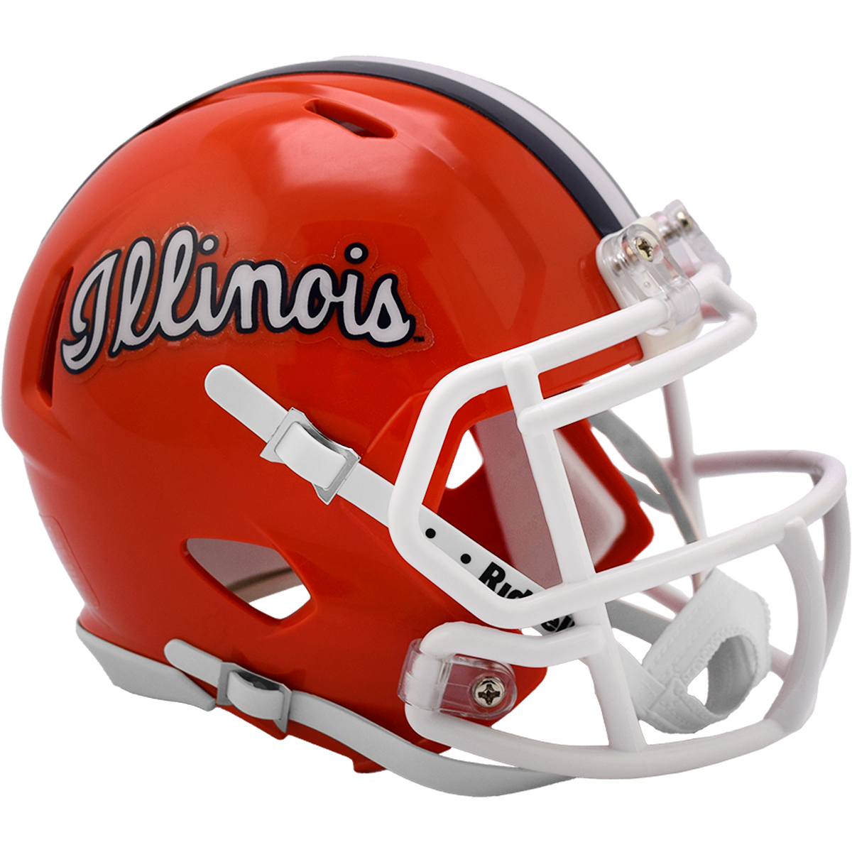 Go Illini! This Illinois Football mini helmet is perfect for your home/office decor! This helmet features an orange body with a white facemask and a script "Illinois" on the side that will really make your Fighting Illini spirit shine through! This is an officially licensed collegiate product.