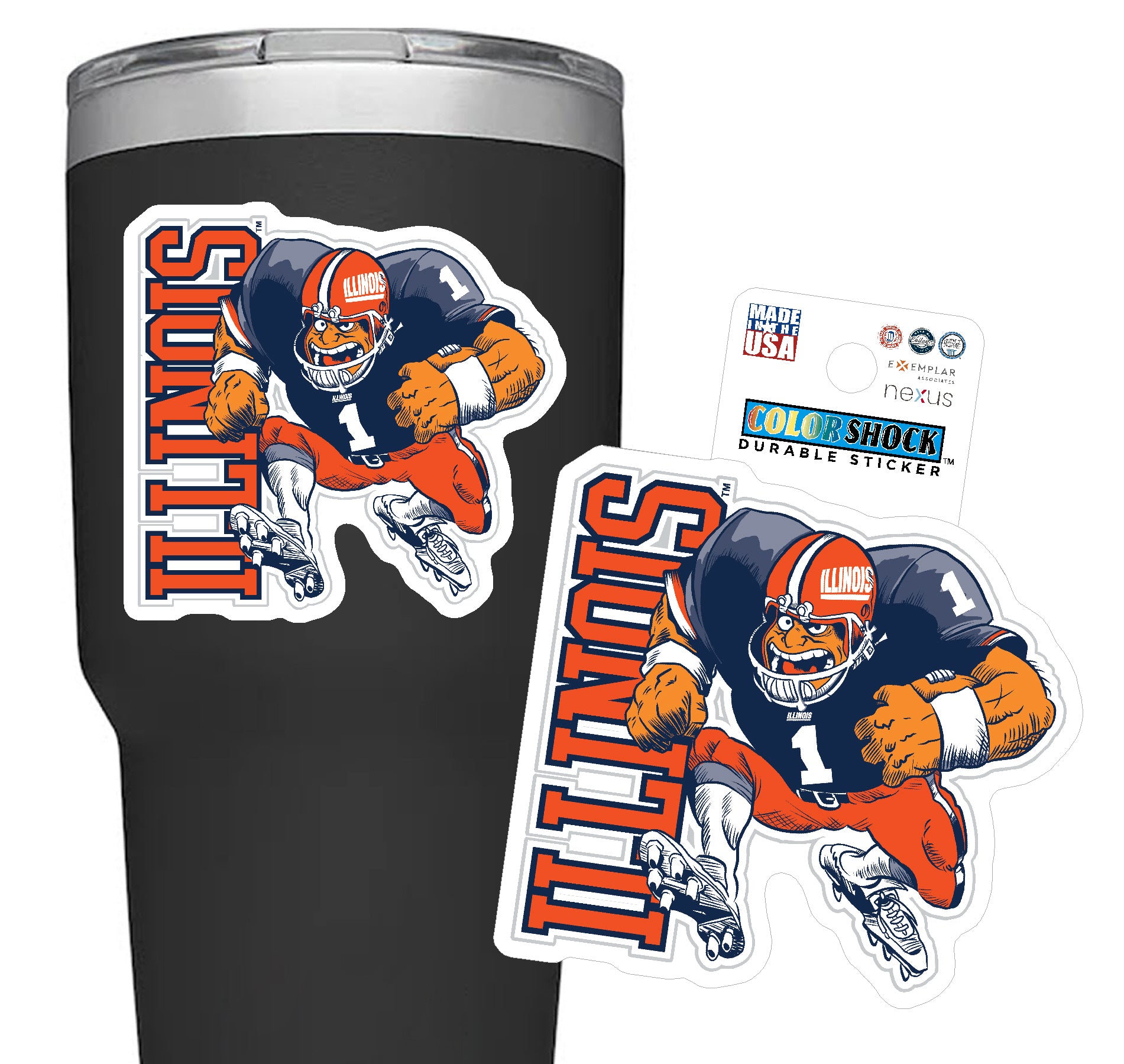 Hail to the orange! This Illinois Football sticker is a great way to show your Fighting Illini spirit! This sticker features a white background with an orange "Illinois" alongside a retro-style football player that is great for sticking anywhere. Make sure to pick up this new Illinois sticker to show off your Illini pride! This is an officially licensed collegiate product.
