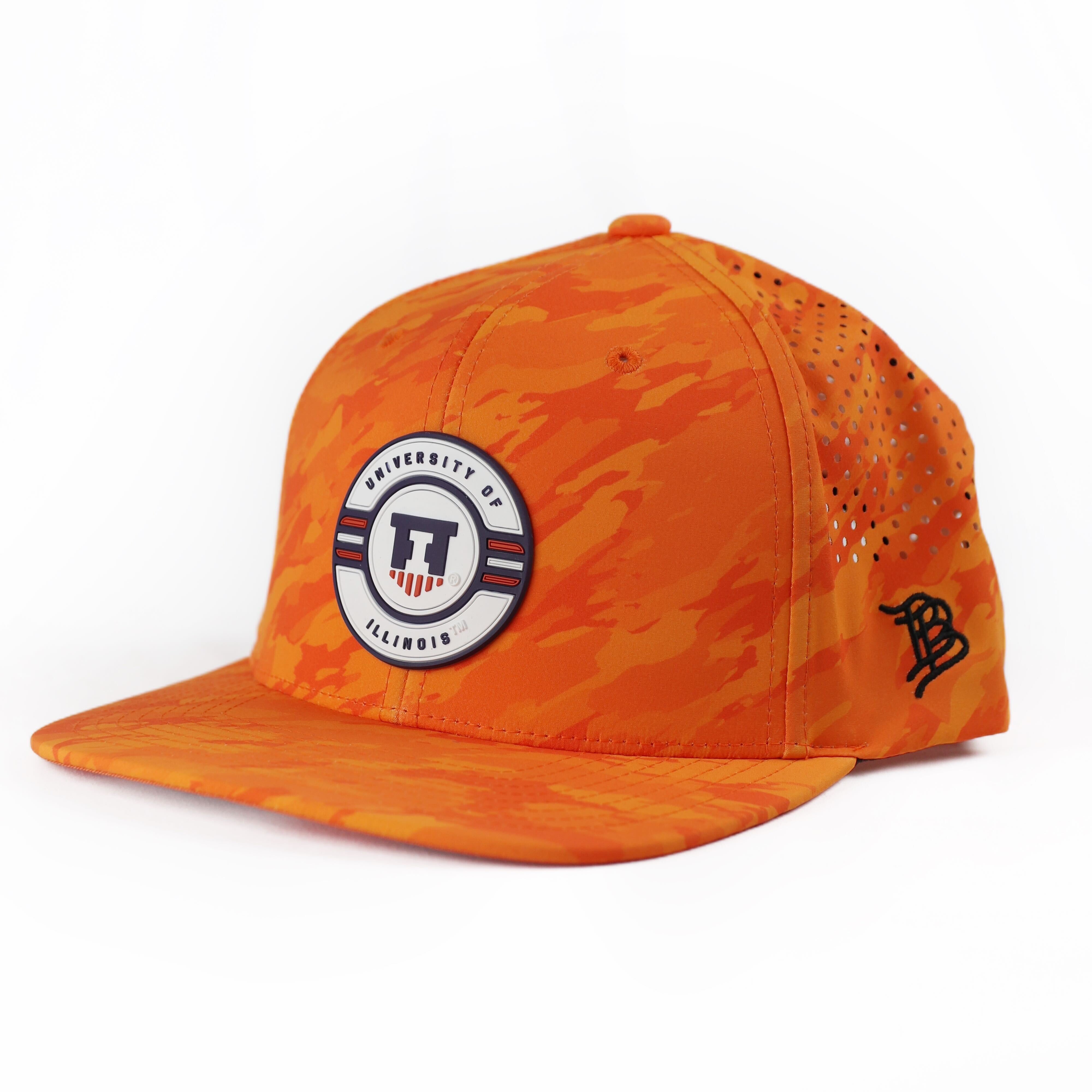 Hail to the orange! This Illinois hat is a great way to show your Fighting Illini spirit! This Branded Bills hat features an orange camo body with a circular blue/white logo on the front, alongside a mesh back and adjustable snapback that is great for any occasion. Make sure to pick up this new Illini hat to show off your Illinois pride! This is an officially licensed collegiate product.