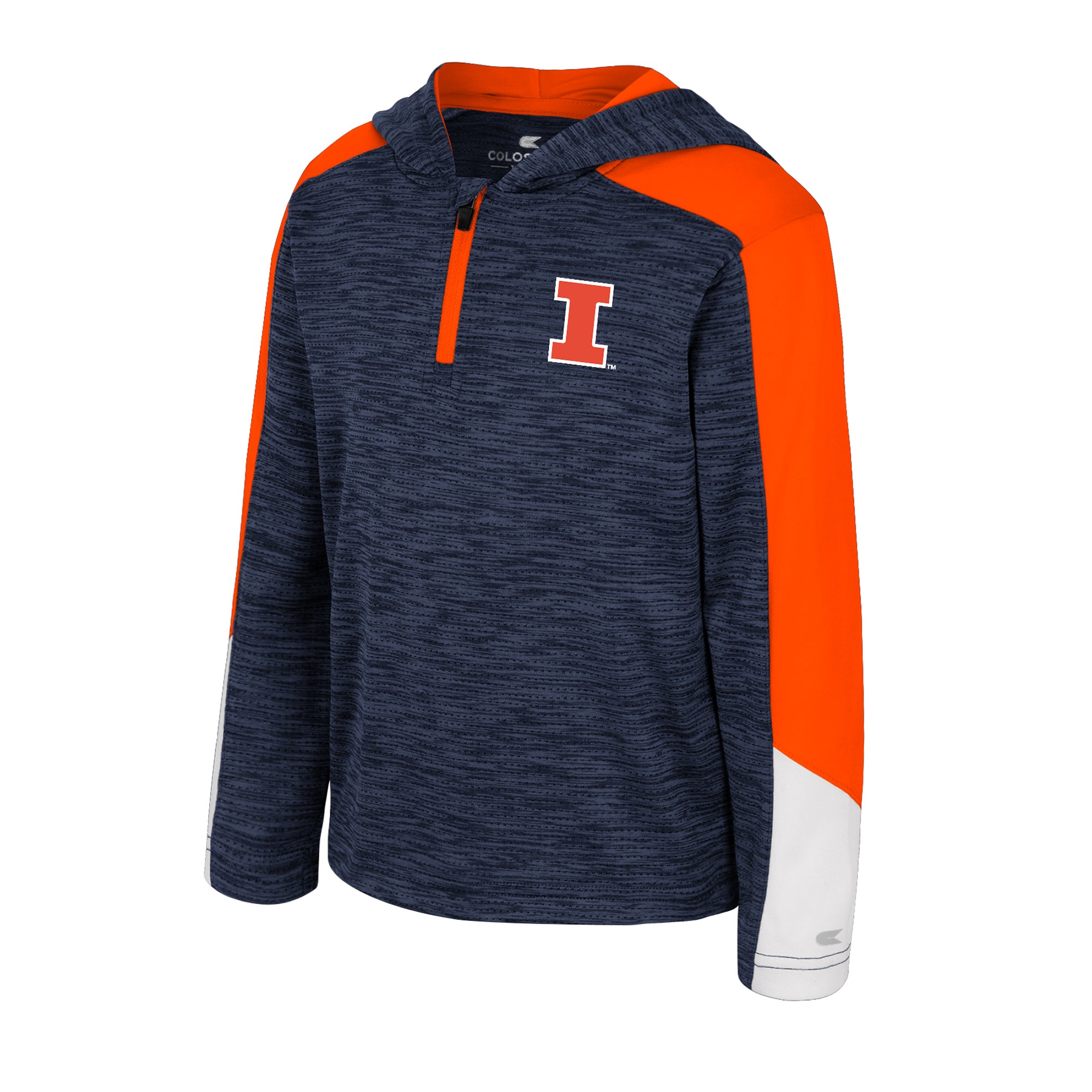 Go Illini! This Illinois hoodie is perfect for your little one! This toddler hoodie features a quarter-zip top with a navy body, orange sleeves, and an orange Block I that will really make your little one's Illinois spirit shine through! This is an officially licensed collegiate product.