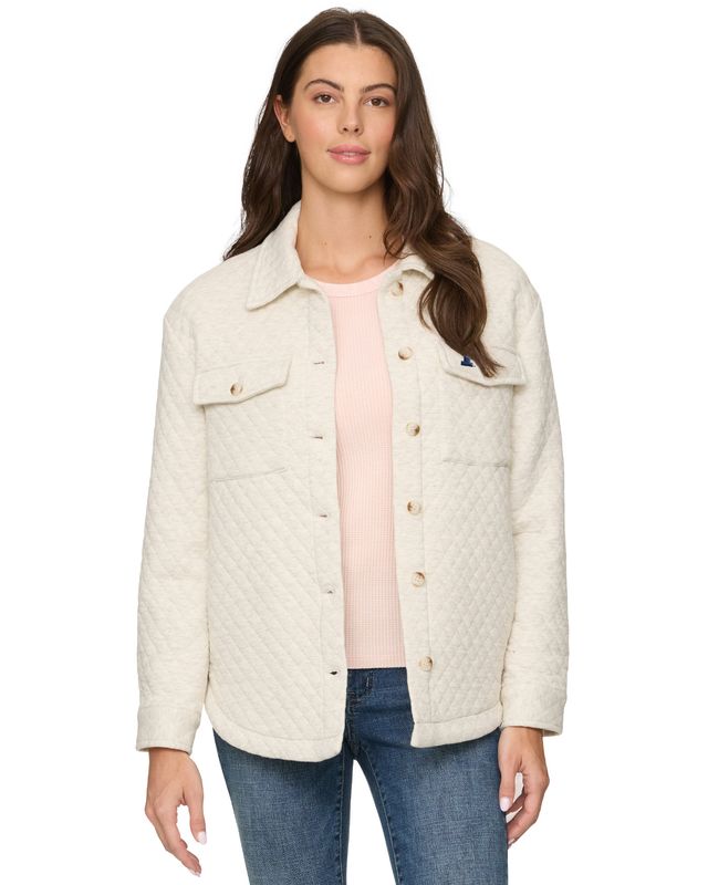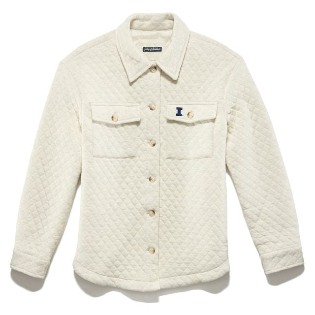 Show your Orange and Blue pride! This Illinois jacket is perfect for any Illini fan. This women's piece features an off-white quilted body with a navy Block I on the left pocket that makes it great for games, tailgates, or campus wear. Don’t miss out on this new Illinois piece to show your Fighting Illini spirit! This is an officially licensed collegiate product.