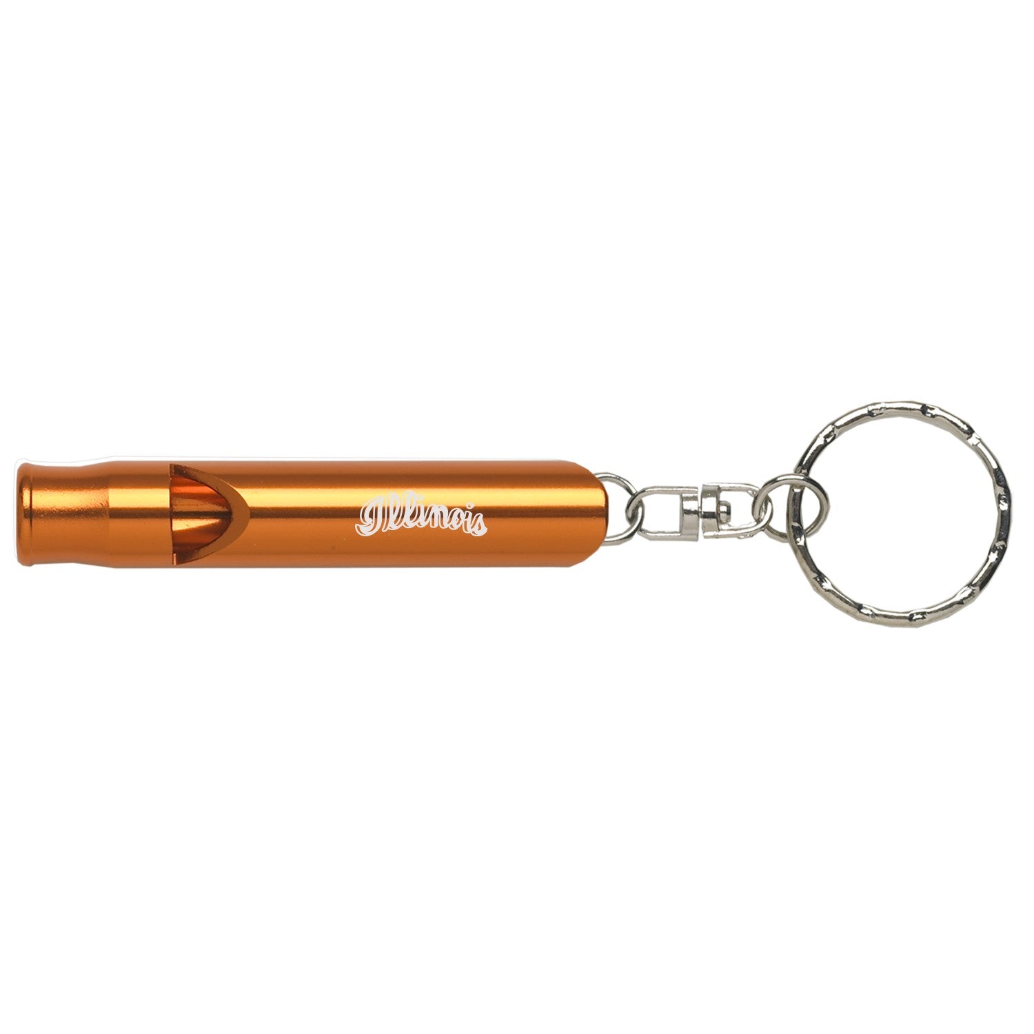 Go Illini! This Illinois keychain whistle is perfect for your keys! This keychain features an orange whistle with a white script Illinois that will really make your Fighting Illini spirit shine through! This is an officially licensed collegiate product.
