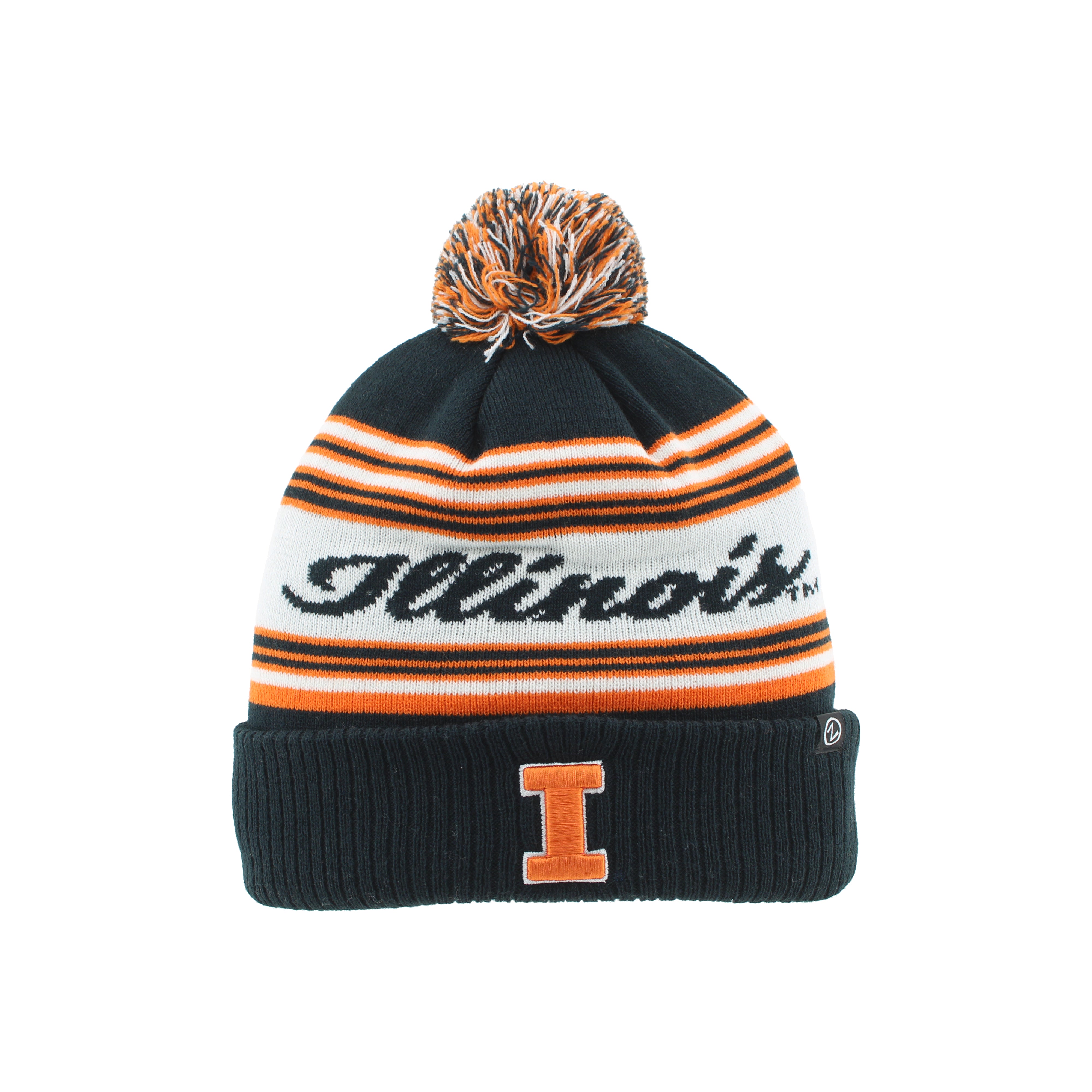 I-L-L! Pick up this Illinois beanie to impress your friends! Once they see you wearing this winter hat, they’re going to want one too! This hat features a comfortable and warm knit navy body with orange/white stripes and a script Illinois alongside an orange Block I and multicolor pom perfect for showing your Illini spirit at games, tailgates, or just around campus. This is an officially licensed collegiate product.