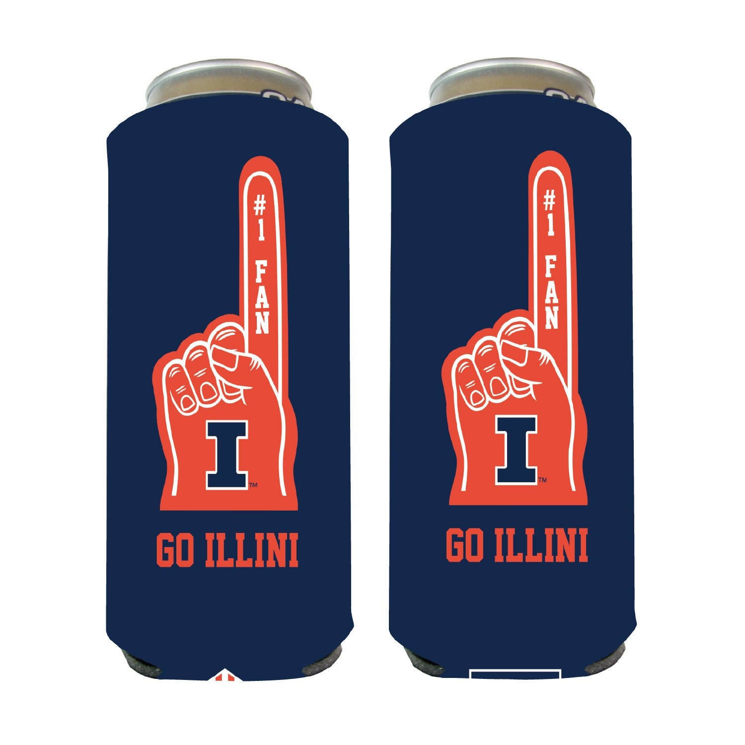 I-L-L! Pick up this 24oz Illinois koozie to really show your Illini spirit! This can koozie features a blue body with an oragne #1 fan finger along with an orange "Go Illini" that will make an unforgettable addition to your tailgate/game day setup! Get one online or in-store today! This is an officially licensed collegiate product.
