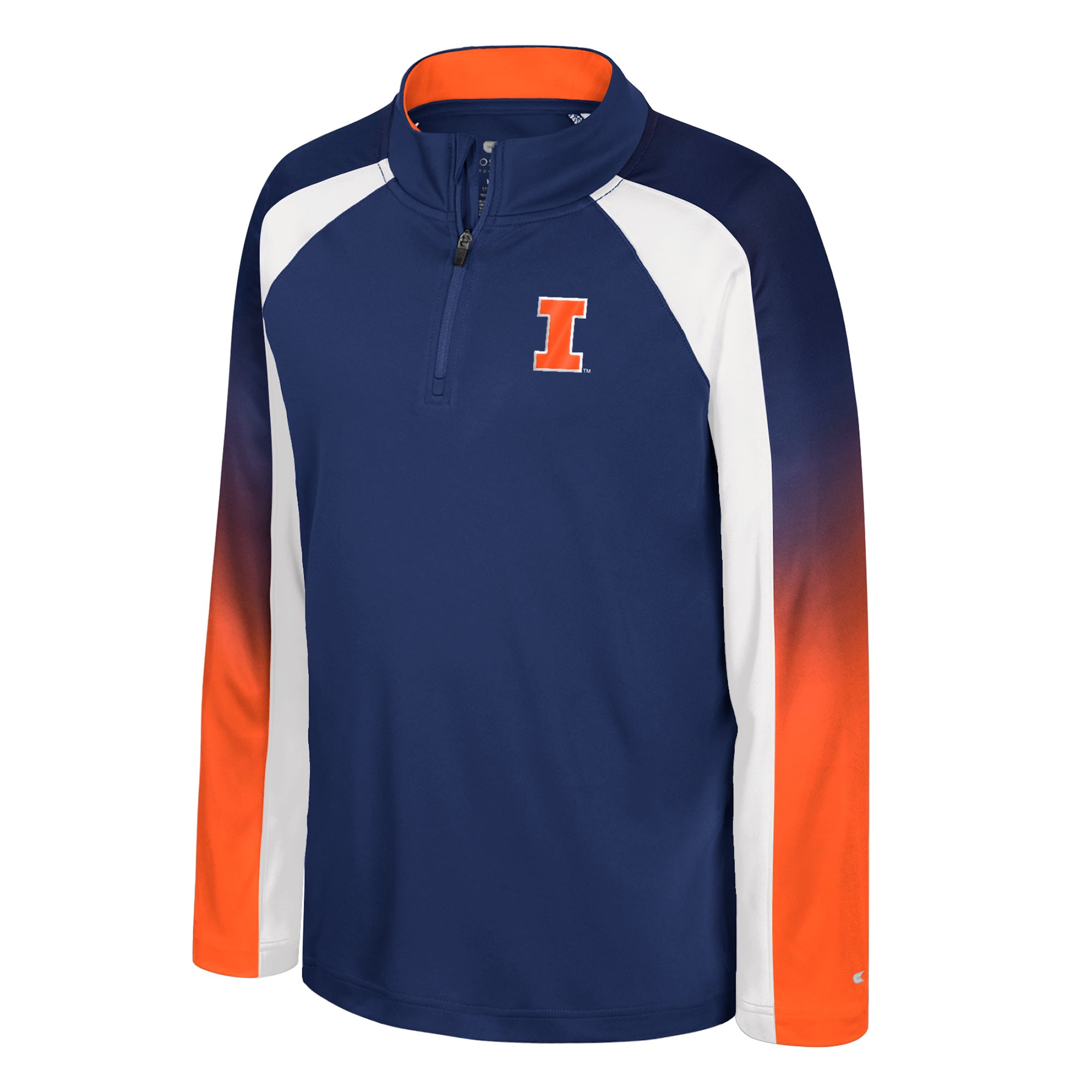 Go Illini! This Illinois pullover is perfect for your kiddo to wear to games! This kids quarter-zip features a navy body with an orange Block I, along with white/orange accents on the arms that will really make your kiddo's Illinois spirit shine through! This is an officially licensed collegiate product.