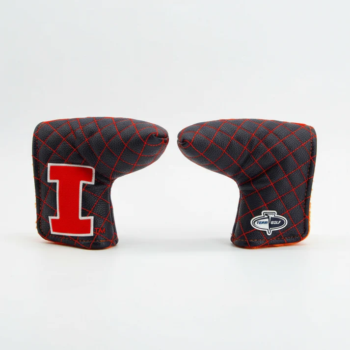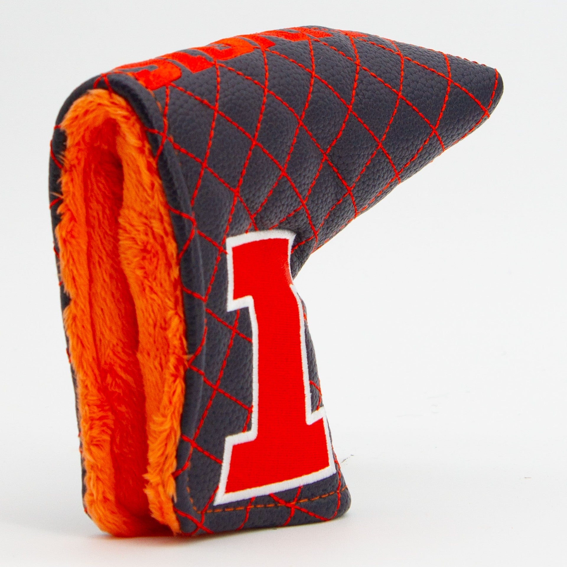 Go Illini! This Illinois putter cover is perfect for showing your orange and blue spirit out on the course! This blade putter cover features a quilted navy body with orange stitching, a fluffy orange interior, and orange Block I embroidered on the side that will really make your Illinois spirit shine through! This is an officially licensed collegiate product.