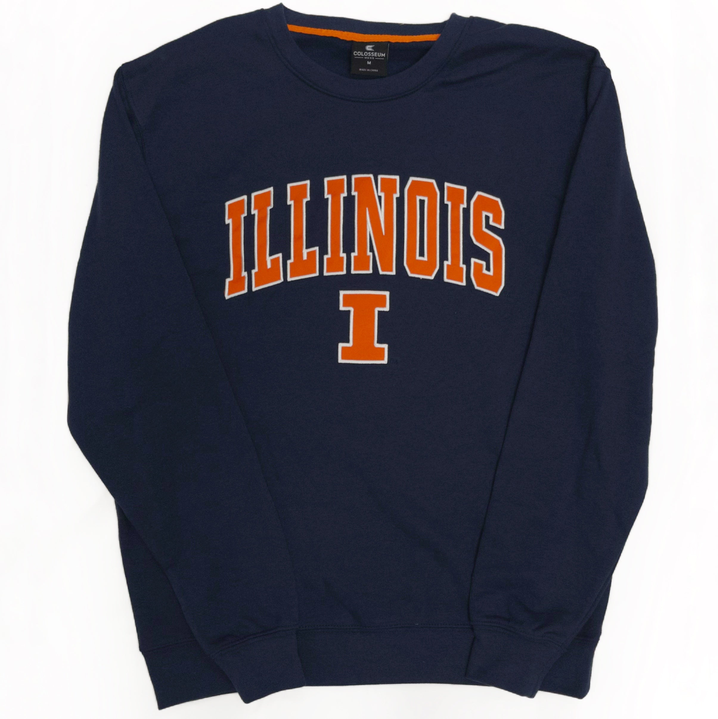Represent the Illini everywhere you go with this Illinois sweatshirt! This twill pullover comes with a navy body with an orange Illinois and Block I that makes it a must-have. Whether you’re in the stands or walking across campus, this crewneck sweatshirt will keep your Fighting Illini spirit strong! This is an officially licensed collegiate product.
