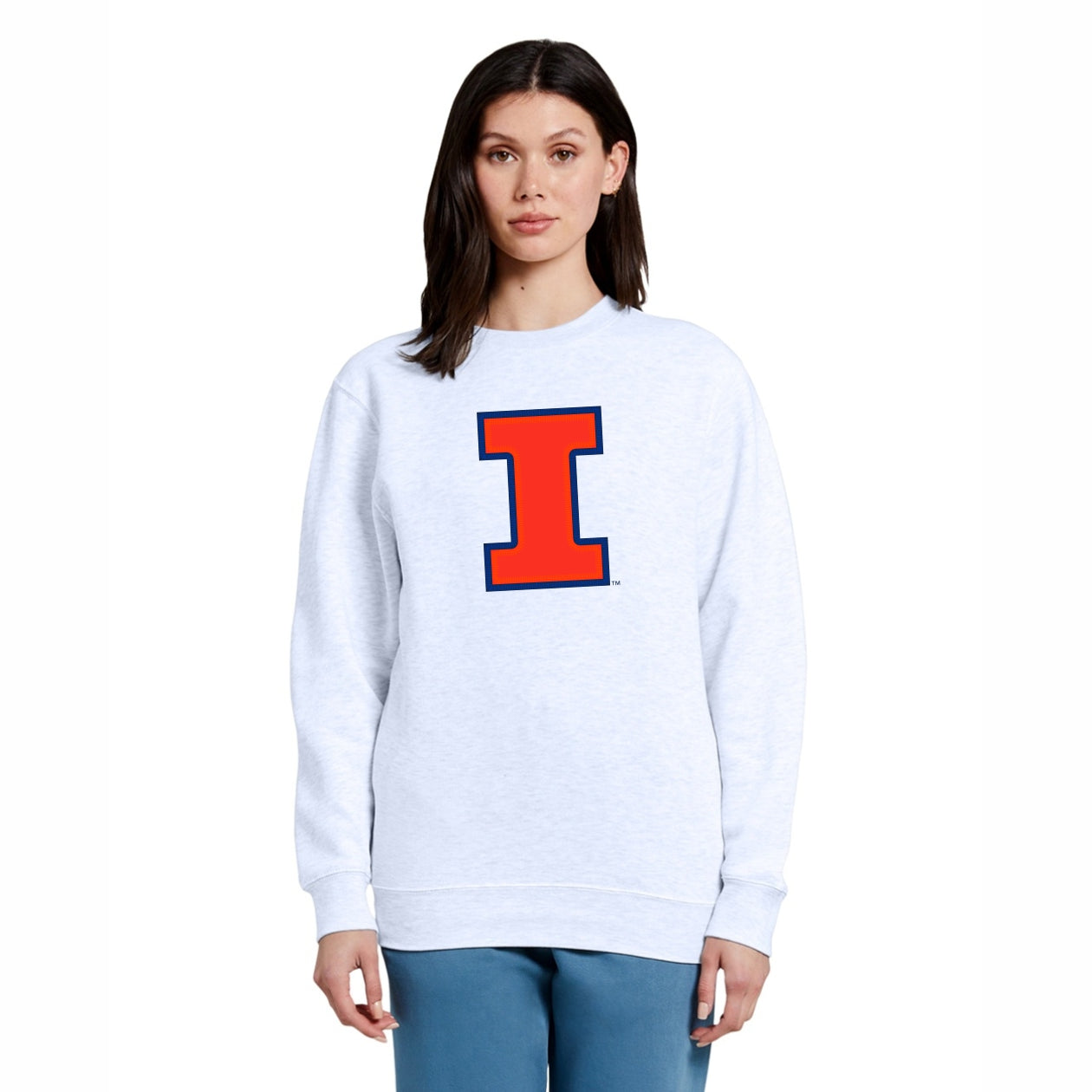 Hail to the orange! This Illinois sweatshirt is a great way to show your Fighting Illini spirit! This women's pullover features a light grey body with a large orange/blue Block I that is great for any occasion. Make sure to pick up this crewneck sweatshirt to show off your Illini pride! This is an officially licensed collegiate product.