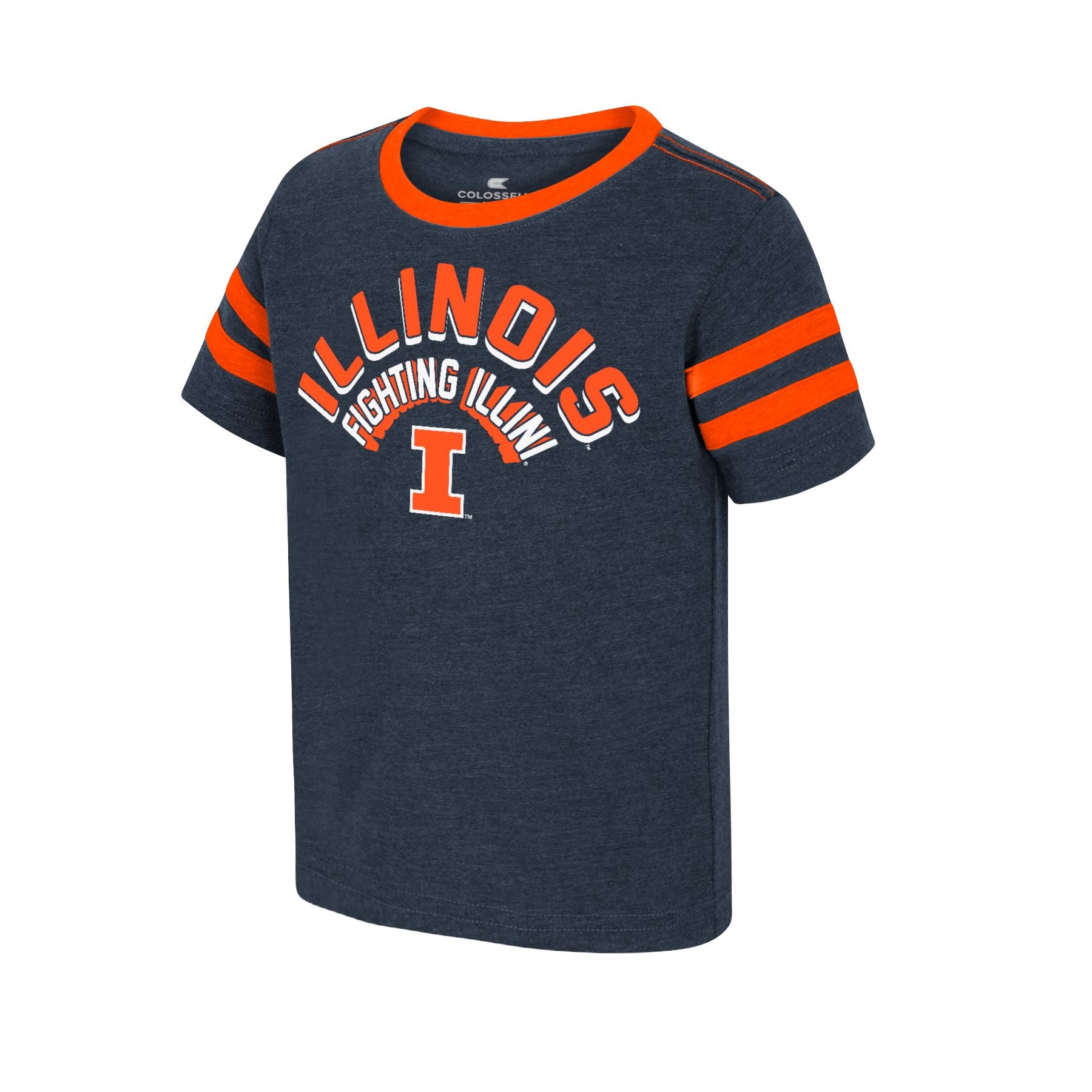 Go Illini! This Illinois t-shirt is perfect for your little one! This tee features a navy body with orange accents and an orange/white Illinois design on the front that will really make your kiddo's Illinois spirit shine through! This is an officially licensed collegiate product.