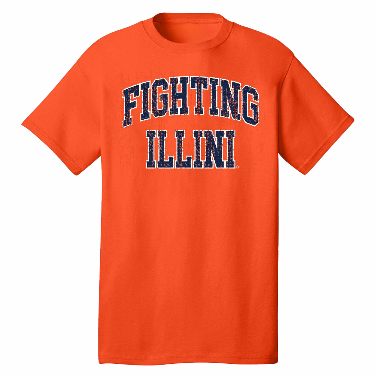 Hail to the orange! This Illinois t-shirt is a great way to show your Fighting Illini spirit! This BOGO Illinois tee features an orange body with a distressed navy and white "Fighting Illini" on the front that is great for any occasion. Make sure to pick up this Illinois shirt to show off your Illini pride! This is an officially licensed collegiate product.