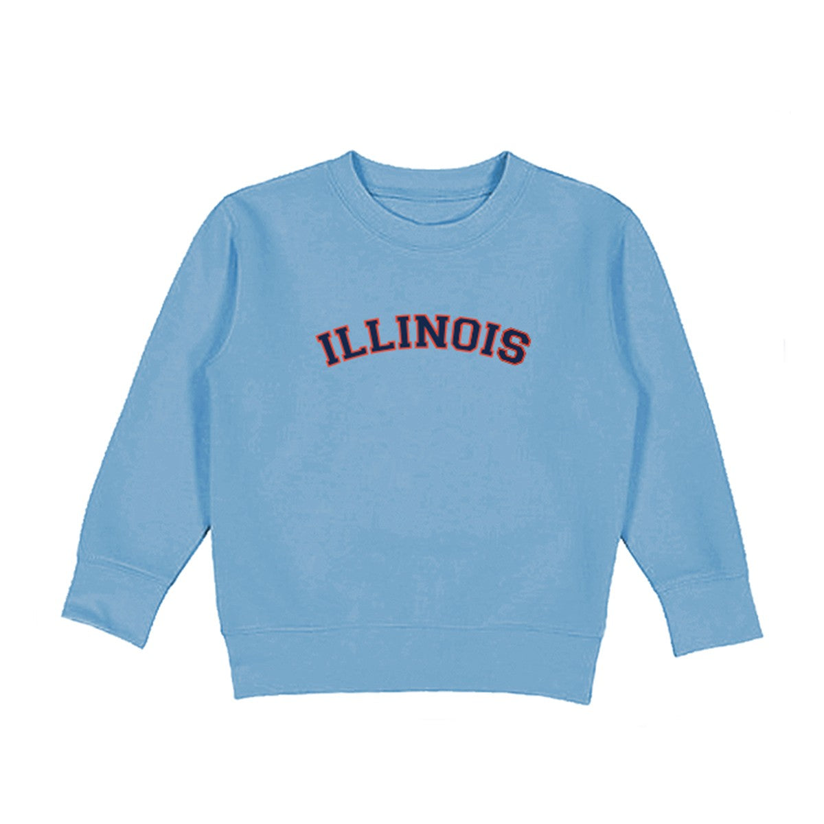 I-L-L! Pick up this Illinois sweatshirt to really show your little one's Illini spirit! This toddler sweatshirt features a light blue fleece body with an orange/blue Illinois arched across the front that will make an unforgettable addition to your little one's Illini wardrobe! Get one online or in-store today! This is an officially licensed collegiate product.