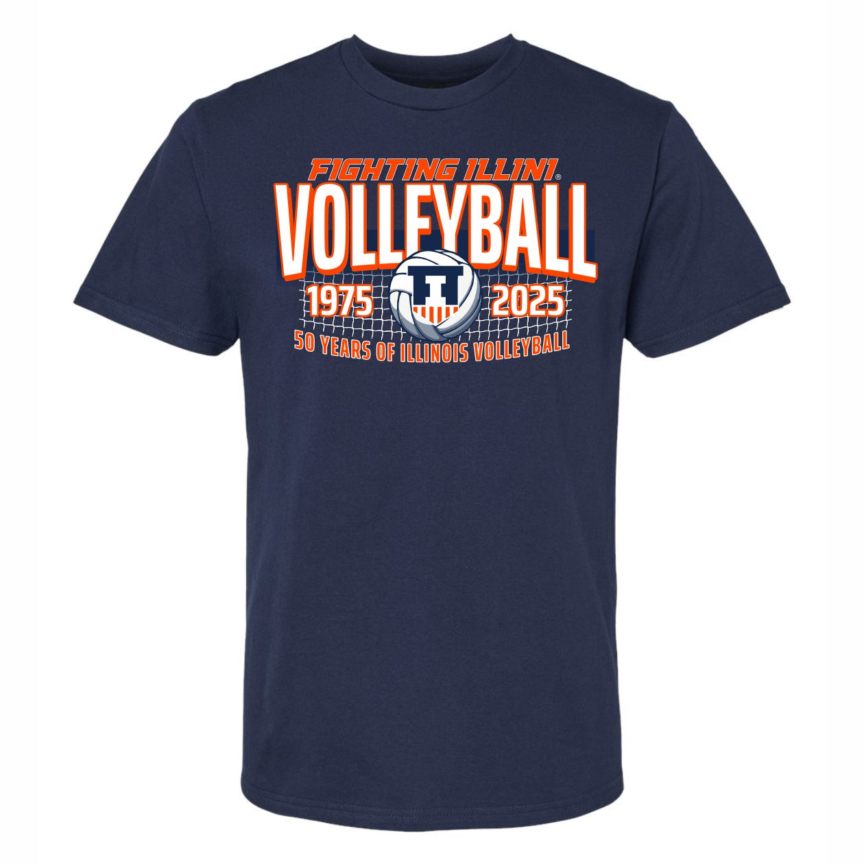 Go Illini! This kids Illinois Volleyball shirt is perfect for celebrating a historic season! This BOGO tee features a navy body with an orange and white design celebrating 50 years of Illinois Volleyball. This new Fighting Illini merch is great for your kiddo to show their Illinois spirit! This is an officially licensed collegiate product.