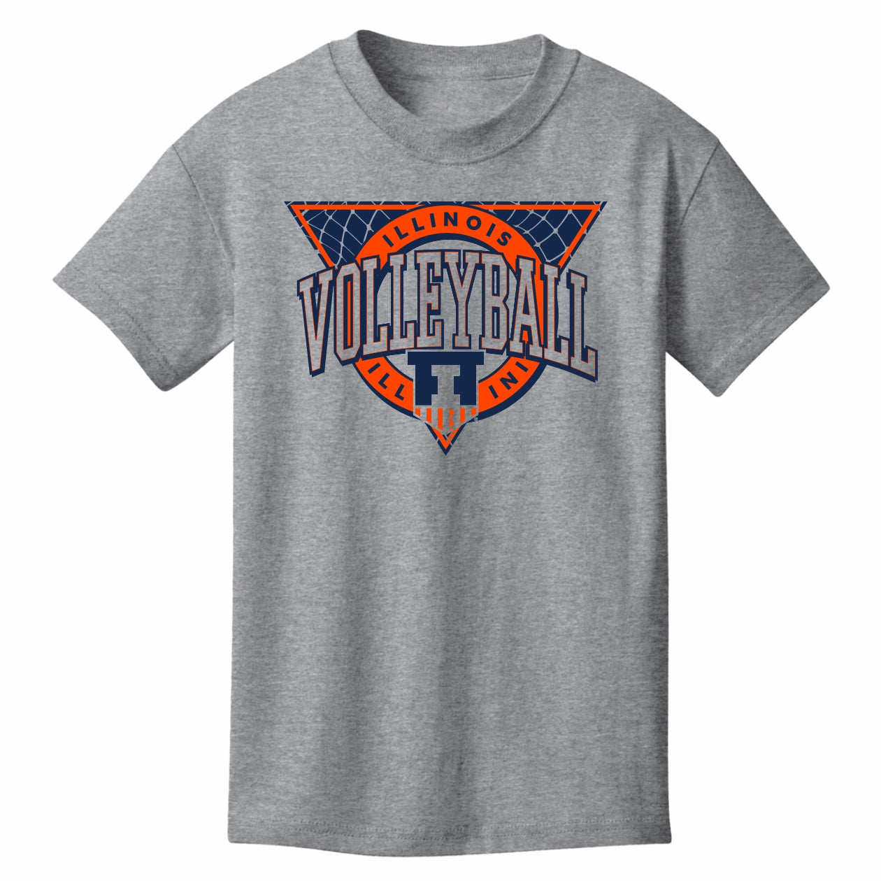 Go Illini! This Illinois Volleyball shirt is perfect for your kiddo to wear to games! This BOGO tee features a grey body with an orange and blue Illini Volleyball design that will really make your kiddo's Illinois spirit shine through! This is an officially licensed collegiate product.