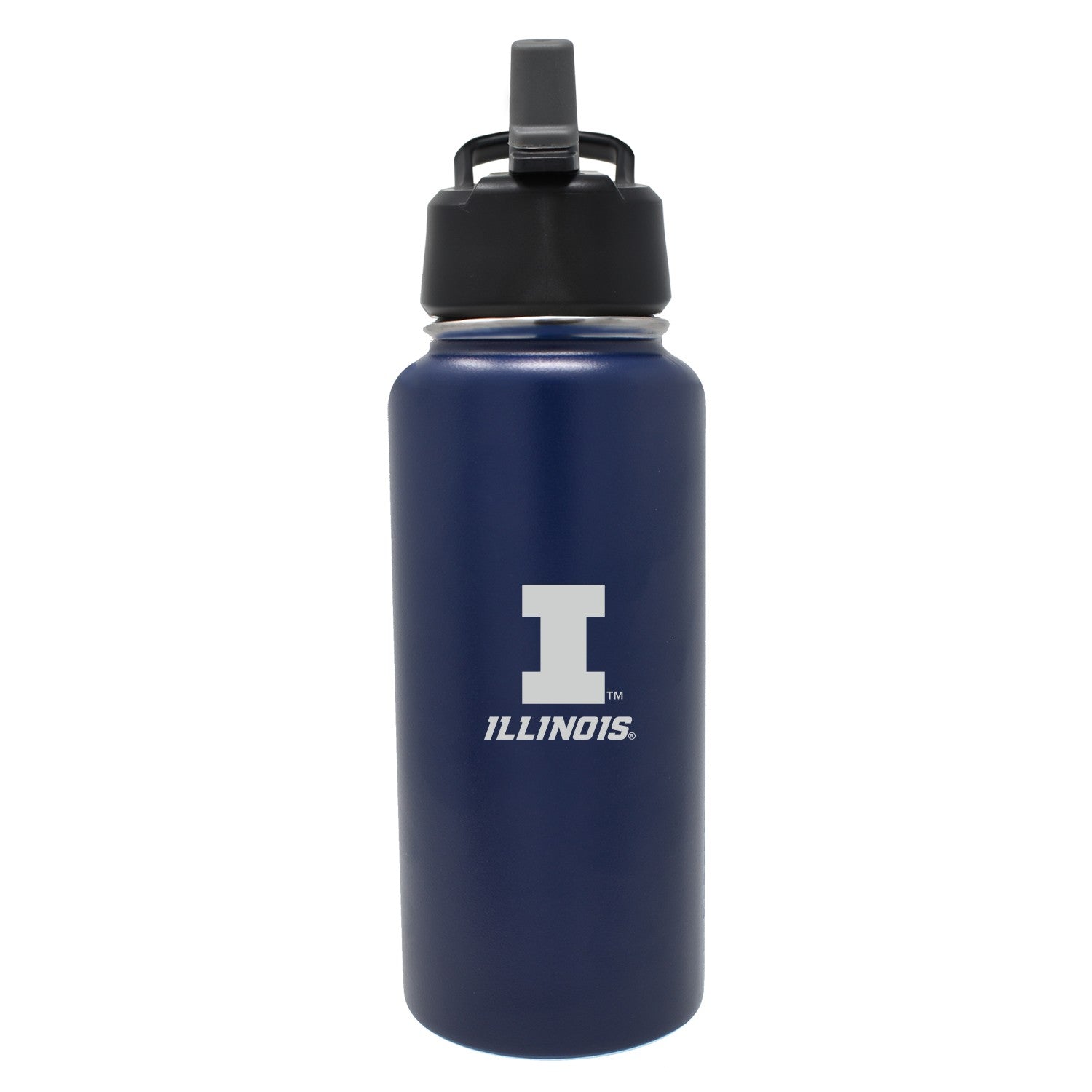 Go Illini! This Illinois water bottle is perfect for staying hydrated on the go! This 32oz bottle features a navy body with an etched Block I and Illinois alongside a black straw lid that will really make your Illinois spirit shine through! This is an officially licensed collegiate product.