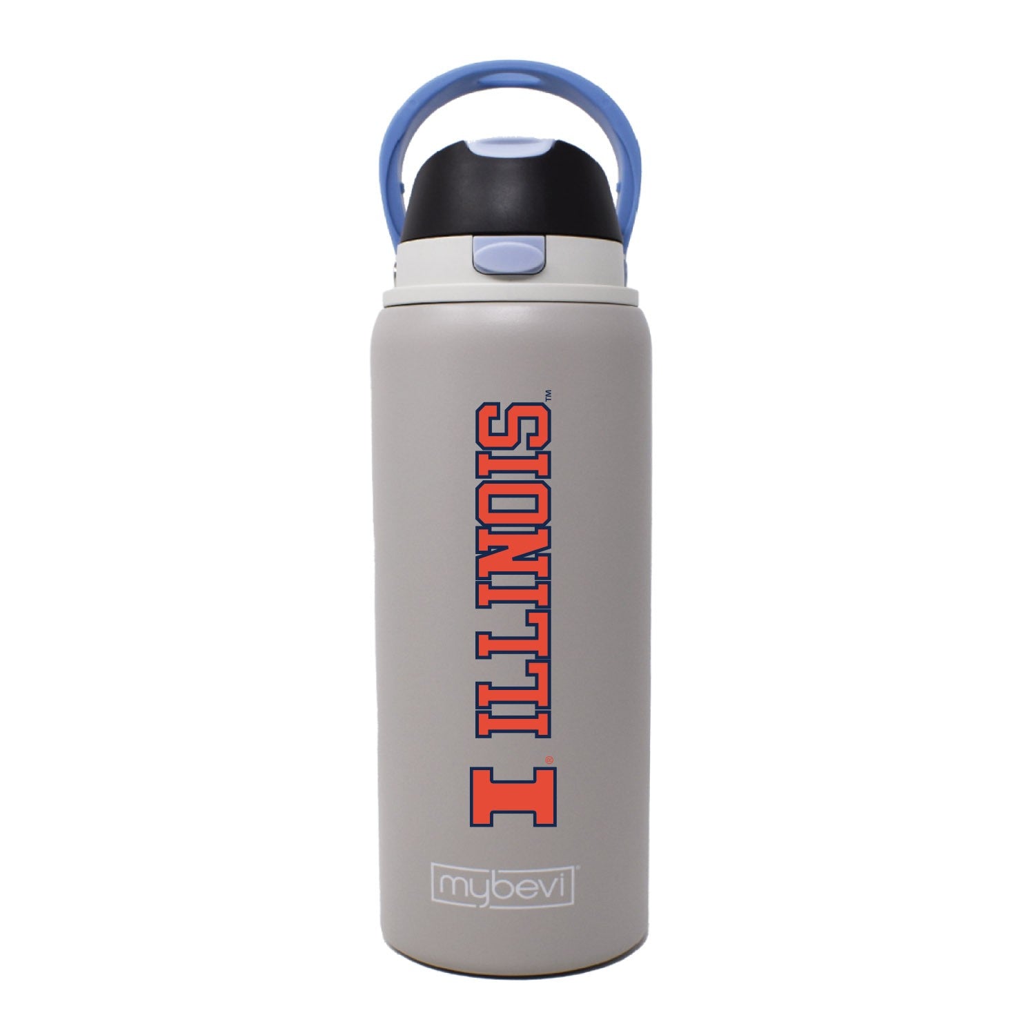 I-L-L! Pick up this Illinois water bottle to really show your Illini spirit! This stainless steel 32oz bottle features a grey body with an orange Illinois design alongside a black flip close lid that will make an unforgettable addition to your Illini collection! Get one online or in-store today! This is an officially licensed collegiate product.
