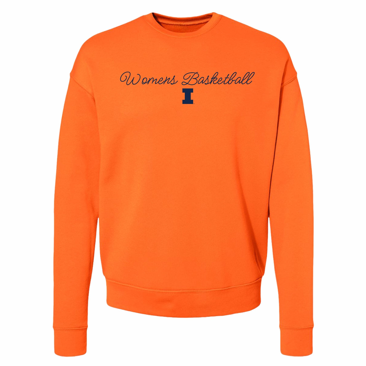 Go Illini! This Illinois Women's Basketball sweatshirt is perfect for wearing around campus or to games. This crewneck pullover features an orange body with a navy script "Women's Basketball" over a navy Block I. This women's sweatshirt is great for showing your Fighting Illini spirit! This is an officially licensed collegiate product.